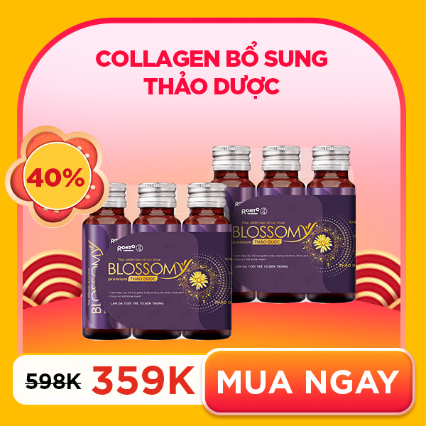 Combo 2 hộp Thực phẩm bảo vệ sức khoẻ giúp Giảm stress Ngủ sâu Sáng khỏe da Blossomy Premium Thảo Dược Collagen (hộp 10 chai x 50ml)Special Price 1.701.000 ₫ Giá gốc 1.890.000 ₫ -