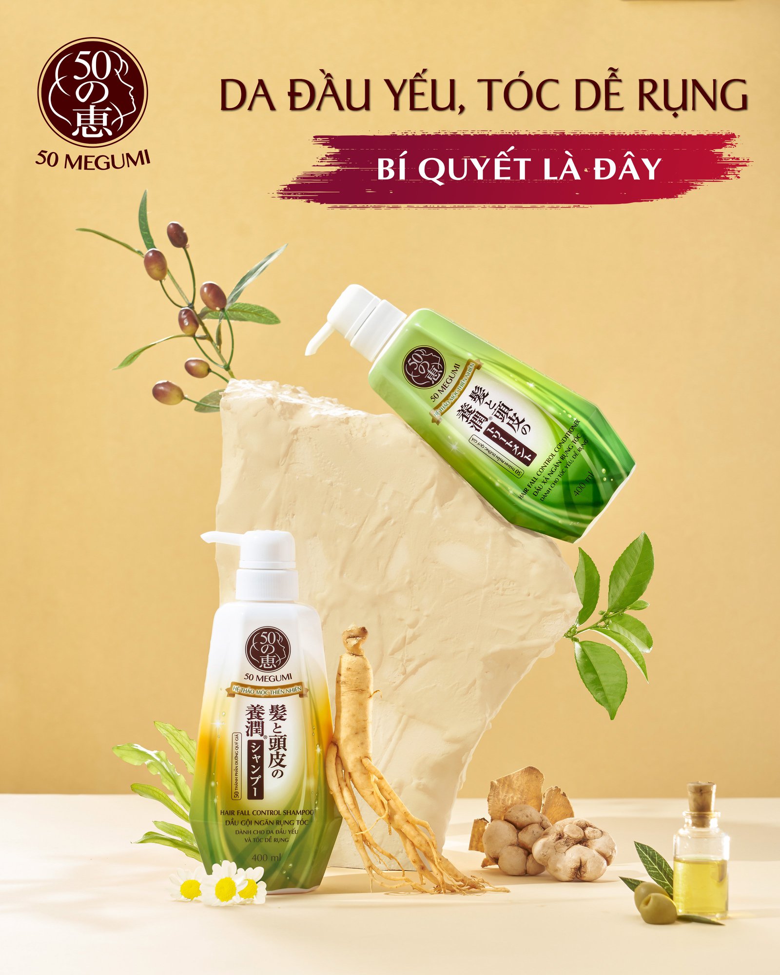 Bộ gội xả ngăn rụng tóc 50 Megumi Hair Fall Control Shampoo chứa thành phần dưỡng quý giá được chọn lọc kĩ lưỡng phù hợp với tình trạng tóc và da đầu trước ngưỡng tuổi 40, cung cấp nguồn dinh dưỡng tối ưu cho da đầu, giữ mái tóc dày và khỏe mạnh.