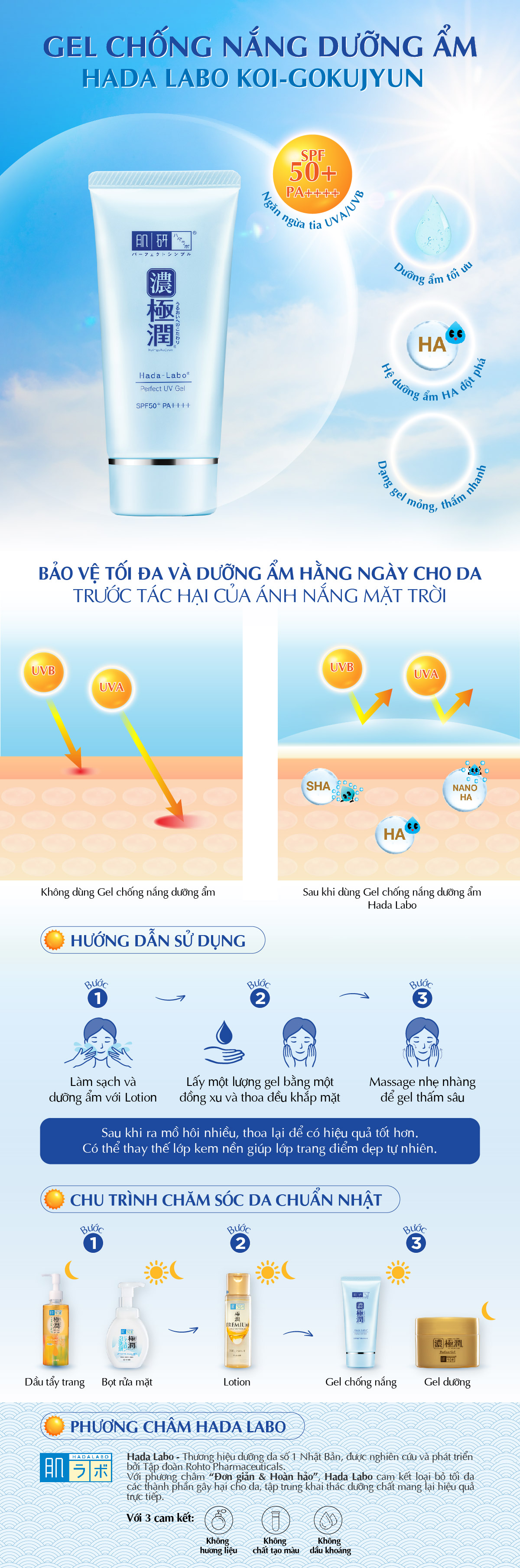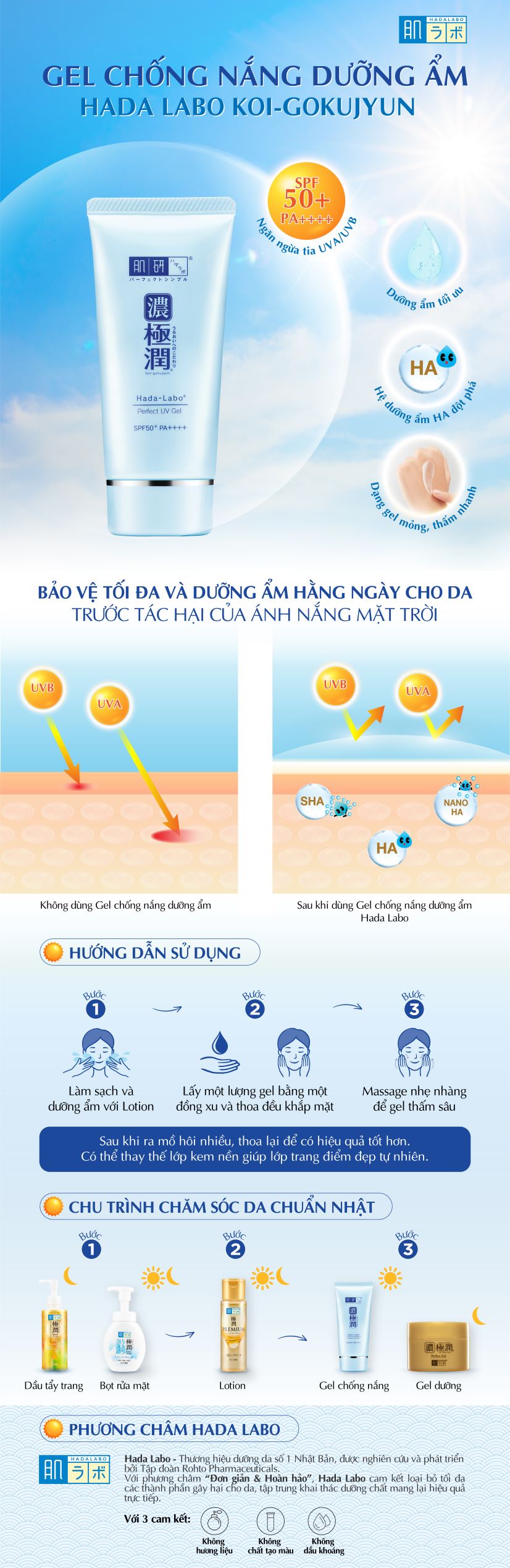 Hướng dẫn sử dụng Gel chống nắng dưỡng da ẩm mịn Hada Labo Koi-Gokujyun Perfect Uv Gel (Sunscreen):