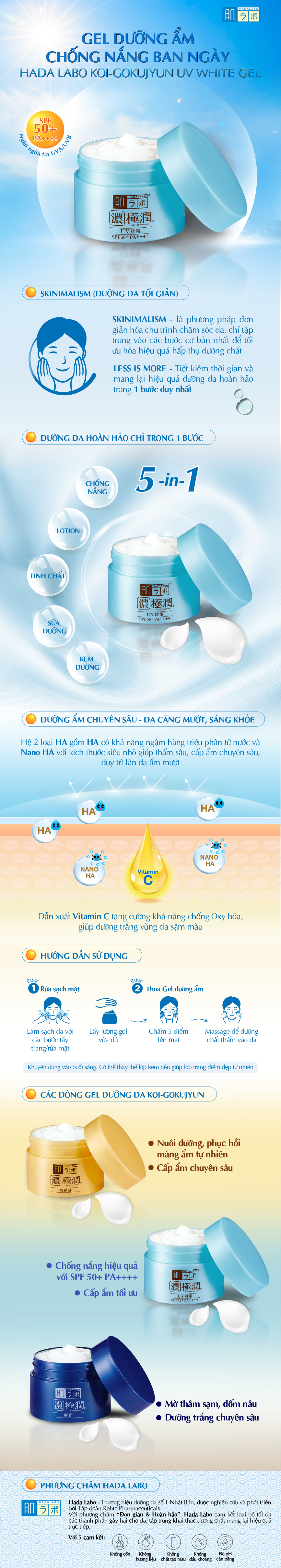 Hướng dẫn sử dụng kem chống nắng dưỡng ẩm Hada Labo Koi-Gokujyun UV White Gel SPF50+ PA++++: