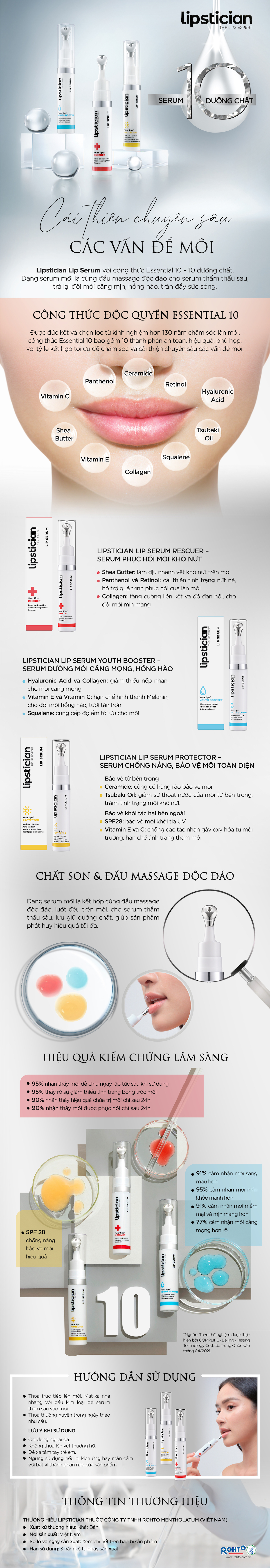 Dựa trên xu hướng sử dụng sản phẩm thiên hướng dược mỹ phẩm ngày càng được ưu chuộng vì tính an toàn và hiệu quả; khách hàng đang có nhu cầu tìm kiếm sản phẩm dưỡng môi cao cấp nhanh chóng giải quyết được các vấn về môi như nhiều nếp nhăn, môi thâm xỉn không hồng hào, môi hay bị khô nứt nẻ… Công ty Rohto-Mentholatum (Việt Nam) với trên 120 năm nghiên cứu & phát triển các sản phẩm chăm sóc môi cao cấp; đã nghiên cứu và cho ra đời thương hiệu dưỡng môi chuyên sâu mới Lipstician Lip Serum.