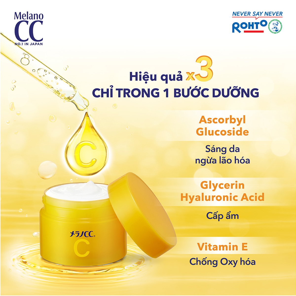 Với công thức độc quyền kết hợp giữa VITAMIN C VÀ VITAMIN E, công ty Rohto Nhật Bản đã giới thiệu đến người tiêu dùng dòng sản phẩm MELANO CC với công hiệu dưỡng trắng sáng da, mờ thâm mụn – đốm nâu và hỗ trợ se khít lỗ chân lông.